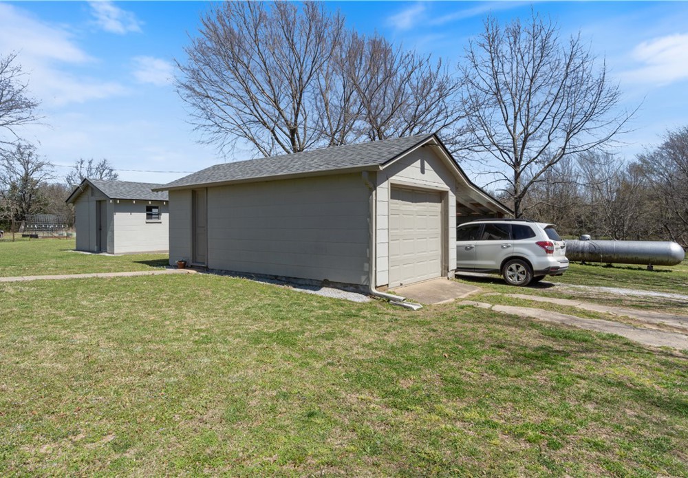 Escape to your private retreat on 9.37 acres m/l, just 20 minutes from Fayetteville or Huntsville. This restored 1951 home, remodeled in 2017, offers 1,152 sq ft of comfortable living. Recent water heater and softener, plus a mudroom for easy cleanup. The property includes multiple quality outbuildings, featuring a fully insulated 30x40 shop, provision building with electricity, and additional garage/storage space. Enjoy a pond, garden area, fire pit, and a modernized outhouse near outdoor spaces. A 75-ft well with Bison pump and dedicated outdoor watering provide reliable water access. RV pad with 50-amp hookup adds convenience for guests. A peaceful, functional property designed for comfort and country living.